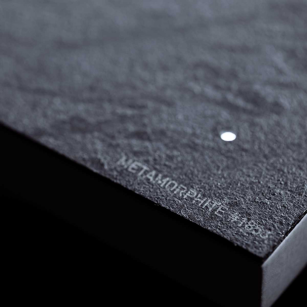 CREATOR'S EDITION METAMORPHITE mit dem auswechselbaren Frontcover aus Millionen Jahre altem Schiefer ist ein Unikat, das in einem aufwendigen Druckverfahren signiert und einzeln nummeriert wird. Dank der typischen und einzigartigen Struktur des Sedimentgesteins entsteht ein interessantes Farbspiel mit verschiedenen Grautönen. Die 45 x 45 cm grosse EARTH 45 verleiht, ob an der Wand oder am Standfuss, jedem Raum ein einzigartiges, edles Ambiente.QLOCKTWO EARTH 45 verfügt über ein auswechselbares Frontcover METAMORPHITE aus Millionen Jahre altem Schieferl. Das Frontcover der QLOCKTWO EARTH 45 wird von Magneten gehalten. Daher kann dieses für einen Farb- oder Sprachwechsel ohne Werkzeug schnell und problemlos ausgewechselt werden: