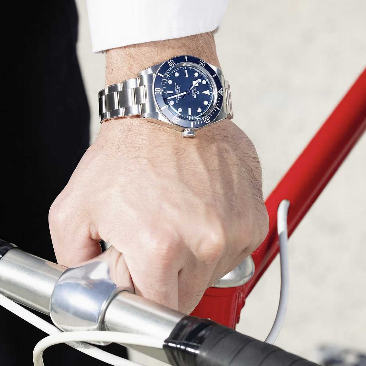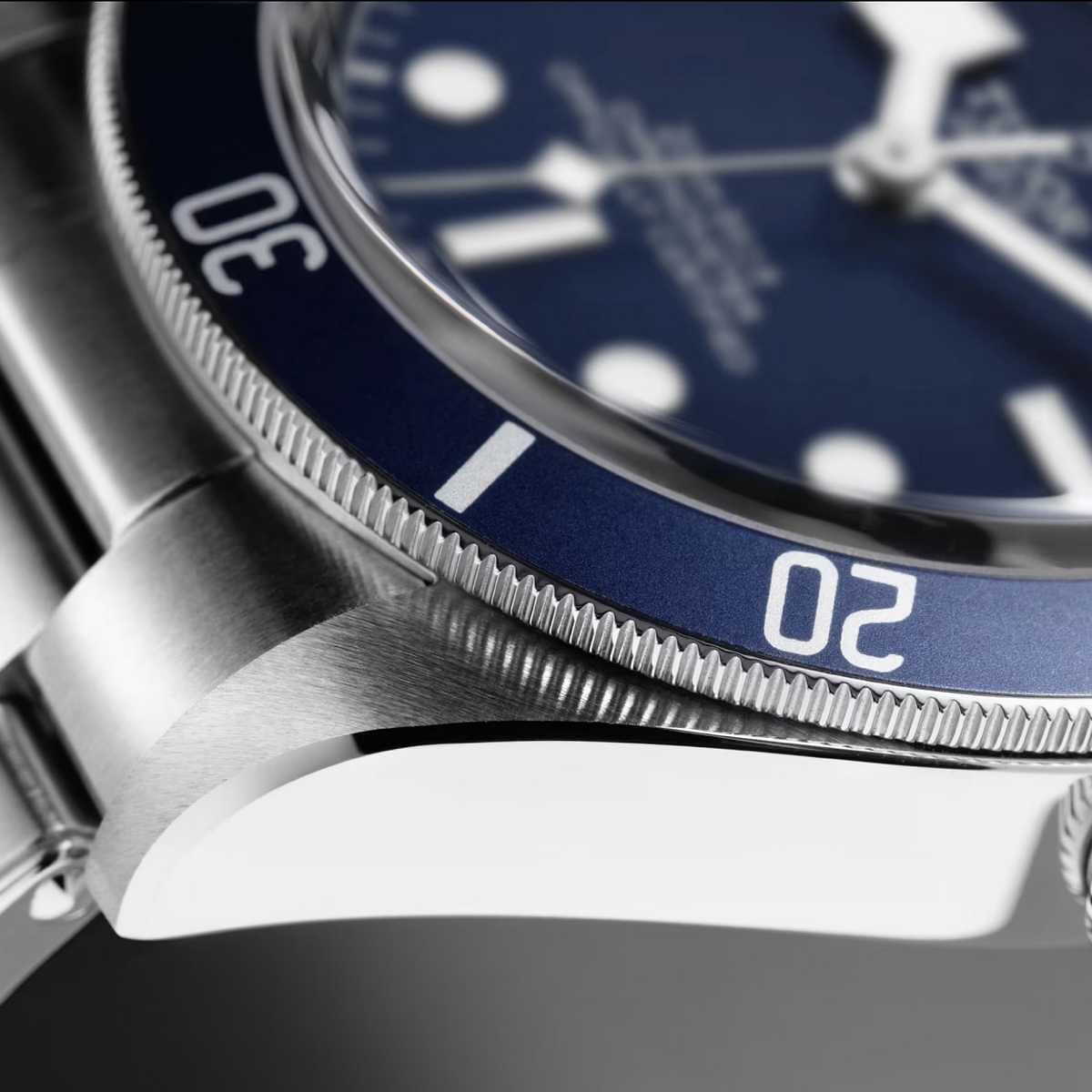 Marke TUDOR Modell Black Bay 58 Referenz M79030B-0001 Dimensionen 39mm Materialien Gehäuse und einseitig drehbare Lünette aus Edelstahl mit mattblau eloxiertem Inlay aus Aluminium, blaues Zifferblatt, geschützt durch ein Saphirglas, begleitet von einem dreireihigen Uhrband mit Sicherheitsfaltschliesse aus Edelstahl Kaliber Mechanisches Manufakturwerk mit COSC-zertifiziertem Manufakturkaliber MT5402 mit automatischem Aufzug Funktionen Anzeige der Stunden, Minuten und Sekunden