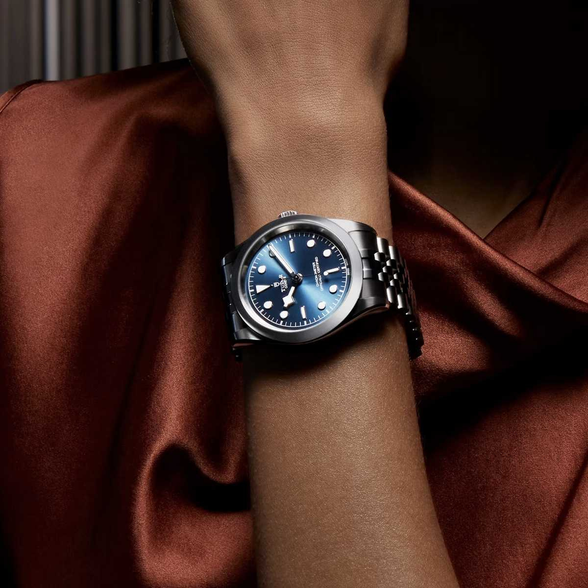 Die verschraubte Krone mit geprägter Tudor-Rose sowie eine Wasserdichtigkeit von bis zu 100 Metern unterstreichen die robuste Konstruktion. Ein flaches Saphirglas schützt das Zifferblatt. Abgerundet wird die Uhr durch ein hochwertiges Edelstahlarmband mit „T-fit“-Faltschliesse und Sicherheitsbügel, das eine komfortable Feinverstellung ermöglicht. Die Black Bay 39 kombiniert sportliche Herkunft mit einer eleganten Note und eignet sich ideal als vielseitige Begleiterin für Alltag und besondere Anlässe.